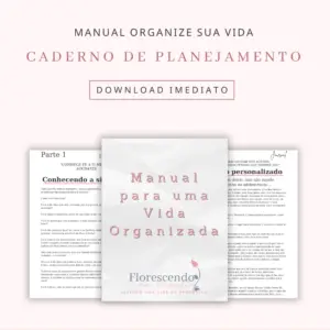 Um passo a passo para você se organizar, um curso gravado, com vídeo aulas, PDFS, tudo explicadinho para você começar hoje mesmo a construir sua vida organizada!