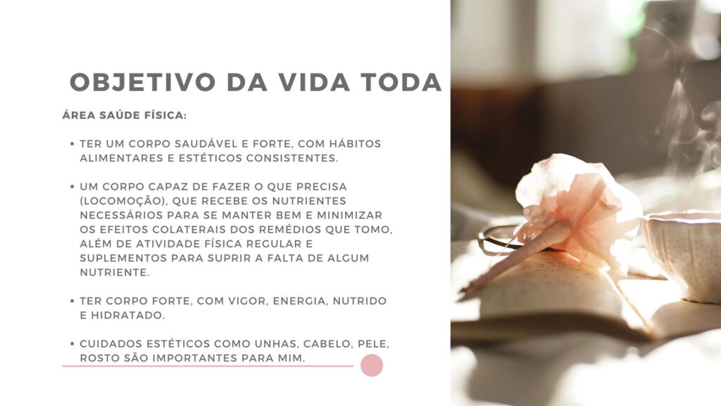 👉 “Como eu gostaria que cada área da minha vida estivesse ao final da minha vida?”